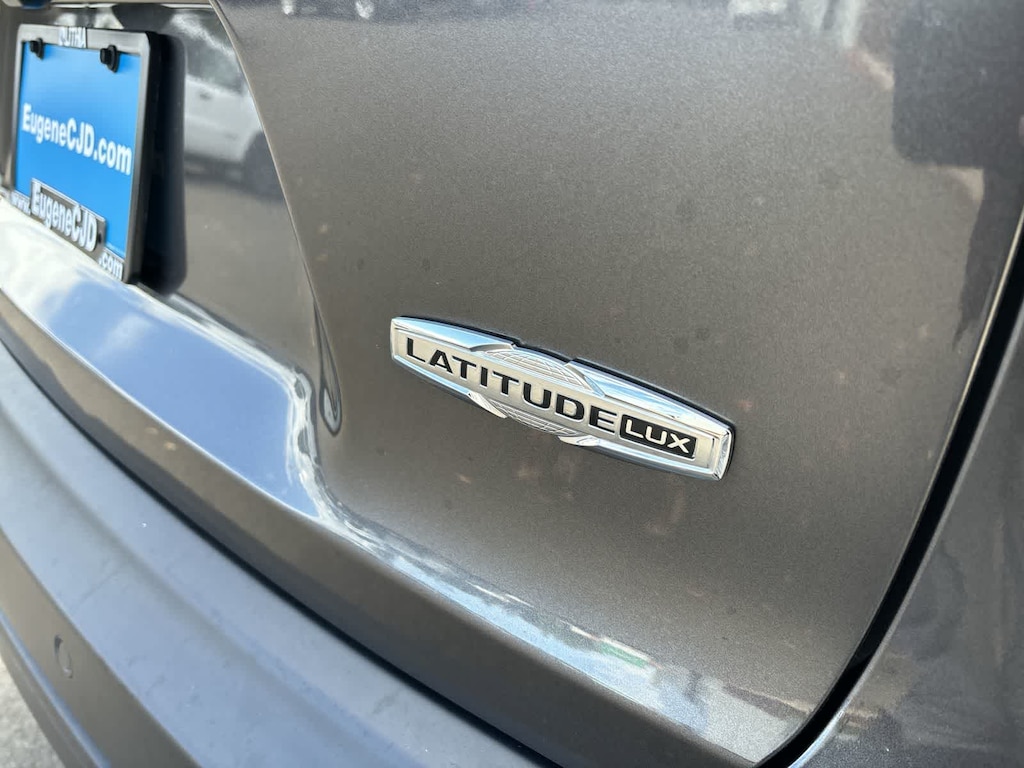COMFORT/CONVENIENCE GROUP Radio: Uconnect 4 w/8.4 Display, Cluster 7 TFT Color Display, 115V Auxiliary Power Outlet, Universal Garage Door Opener, Humidity Sensor, Rear View Auto Dim Mirror, 8.4 Touchscreen Display, Power Liftgate, Security Alarm, Air Conditioning ATC w/Dual Zone Control, Premium Air Filter, MOPAR INTERIOR PACKAGE MOPAR Cargo Area Liner, Slush Mats, TRANSMISSION: 9-SPEED 948TE AUTOMATIC (STD), ENGINE: 3.2L V6 24V VVT W/ESS (STD). Jeep Latitude Lux with Granite Crystal Metallic Clearcoat exterior and Black interior features a V6 Cylinder Engine with 271 HP at 6500 RPM*.