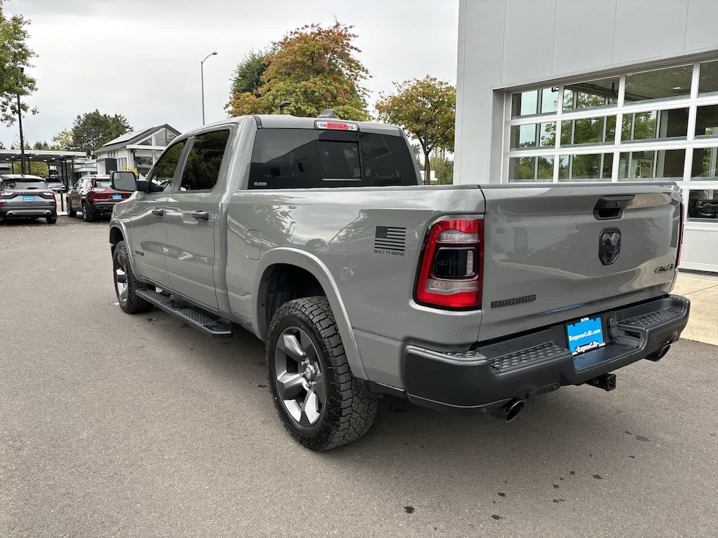 BUILT-TO-SERVE EDITION Black Door Handles, Steering Gear Skid Plate, Falken Brand Tires, LED Taillamps, Black Headlamp Bezels, Front Suspension Skid Plate, Power 4-Way Driver Lumbar Adjust, US Flag Decal, Tires: 275/55R20 OWL All-Terrain, Front Extra HD Shock Absorbers, Black Tubular Side Steps, Power 8-Way Driver Seat, Front LED Fog Lamps, Full Length Floor Console, Tire: Full Size Spare, LED Reflector Headlamps, Black Rear Bumper, E-Locker Rear Axle, RAM Grille Badge - Black, 9 Amplified Speakers w/Subwoofer, Bucket Seats, Body Color Fender Flares, Grille Surround 1 Black Texture 1 Black, Rear Extra HD Shock Absorbers, Black Exterior Truck Badging, Center Console Parts Module, Built-To-Serve Edition I/P Badge, Tow Hooks, Wheels: 20 x 9 Aluminum, Black Onyx Interior Accent, Dual Exhaust, BIG HORN LEVEL 2 EQUIPMENT GROUP Radio: Uconnect 4 w/8.4 Display, Rear Window Defroster, ParkSense Front/Rear Park Assist w/Stop, Rear View Auto Dim Mirror, Power Adjustable Pedals, Rear Power Sliding Window, Rear Dome w/On/Off Switch Lamp, Glove Box Lamp, Power 4-Way Driver Lumbar Adjust, 115V Auxiliary Rear Power Outlet, Power 8-Way Driver Seat, 2 USB Full Function/Charge Only Media Hub, Heated Front Seats, Heated Steering Wheel, Foam Bottle Insert (Door Trim Panel), Class IV Receiver Hitch, Dampened Tailgate, Security Alarm, Black Premium Power Mirrors, Big Horn IP Badge, Remote Start System, SiriusXM Satellite Radio, 400W Inverter, Air Conditioning ATC w/Dual Zone Control, 115V Auxiliary Power Outlet, Universal Garage Door Opener, 2nd Row In Floor Storage Bins, Sun Visors, RADIO: UCONNECT 12 W/NAVIGATION Google Android Auto®, SiriusXM Traffic Plus, SiriusXM Satellite Radio, USB Host Flip, Disassociated Touchscreen Display, HD Radio, For Details, Visit DriveUconnect.com, Integrated Center Stack Radio, 1-Yr SiriusXM Guardian Trial, 12 Touchscreen Display, GPS Navigation, SiriusXM Travel Link, 4G LTE Wi-Fi Hot Spot, SiriusXM w/360L, Apple CarPlay®, LED Footwell Lighting, 4-CORNER AIR SUSPENSION, ENGINE: 5.7L V8 HEMI MDS VVT ETORQUE Active Noise Control System, Heavy Duty Engine Cooling, GVWR: 7,100 lbs, Dual Rear Exhaust w/Bright Tips, Hemi Badge, 18 Aluminum Spare Wheel, DUAL-PANE PANORAMIC SUNROOF Premium Overhead Console, Dome Dual LED Reading Lamp, Overhead LED Lamps, TRANSMISSION: 8-SPEED AUTOMATIC (8HP75).