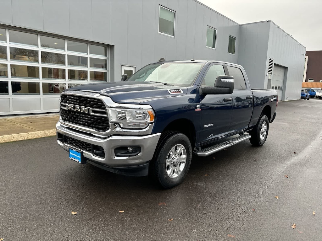 ENGINE: 6.7L I6 CUMMINS TURBO DIESEL Selective Catalytic Reduction (Urea), Dual 730 Amp Maintenance Free Batteries, Cummins Turbo Diesel Badge, Heavy Duty Engine Cooling, Tow Hooks, Diesel Exhaust Brake, Supplemental Heater, Front Bumper Sight Shields, Capless Fuel Fill w/o Discriminator, DIESEL GRAY/BLACK, PREMIUM CLOTH 40/20/40 BENCH SEAT Storage Tray, Rear 60/40 Folding Seat, Front Armrest w/Cupholders, Remote USB Port - Charge Only, Front Center Seat Cushion Storage, Manual Adjust 4-Way Front Passenger Seat, Power Adjust 8-Way Driver Seat, Front Seat Back Map Pockets, Power 2-Way Driver Lumbar Adjust, CHROME FLAT CAB-LENGTH SIDE STEPS, LEVEL 1 EQUIPMENT GROUP Google Android Auto®, For Details, Visit DriveUconnect.com, For More Info, Call 800-643-2112, Leather Wrapped Steering Wheel, Rear Dome w/On/Off Switch Lamp, Front Fog Lamps, Glove Box Lamp, Auto Power-Folding Mirrors, Footwell Courtesy Lamp, 4G LTE Wi-Fi Hot Spot, Mirror Running Lights, Radio: Uconnect 5 W w/8.4 Display, 8.4 Touchscreen Display, Foam Bottle Insert (Door Trim Panel), Wheels: 18 x 8.0 Polished Aluminum, Apple CarPlay®, Big Horn IP Badge, Power Adjustable Convex Aux Mirrors, Forward & Reverse Utility Lights, Locking Lower Glove Box, Selectable Tire Fill Alert, SiriusXM Satellite Radio, Power Heated Fold Telescope Mirrors, Exterior Mirrors w/Supplemental Signals, Steering Wheel Mounted Audio Controls, Exterior Mirrors Courtesy Lamps, Dual Glove, TRANSMISSION: 6-SPEED AUTOMATIC (68RFE). Ram Big Horn with Patriot Blue Pearlcoat exterior and Diesel Gray/Black interior features a Straight 6 Cylinder Engine with 410 HP at 5600 RPM*.