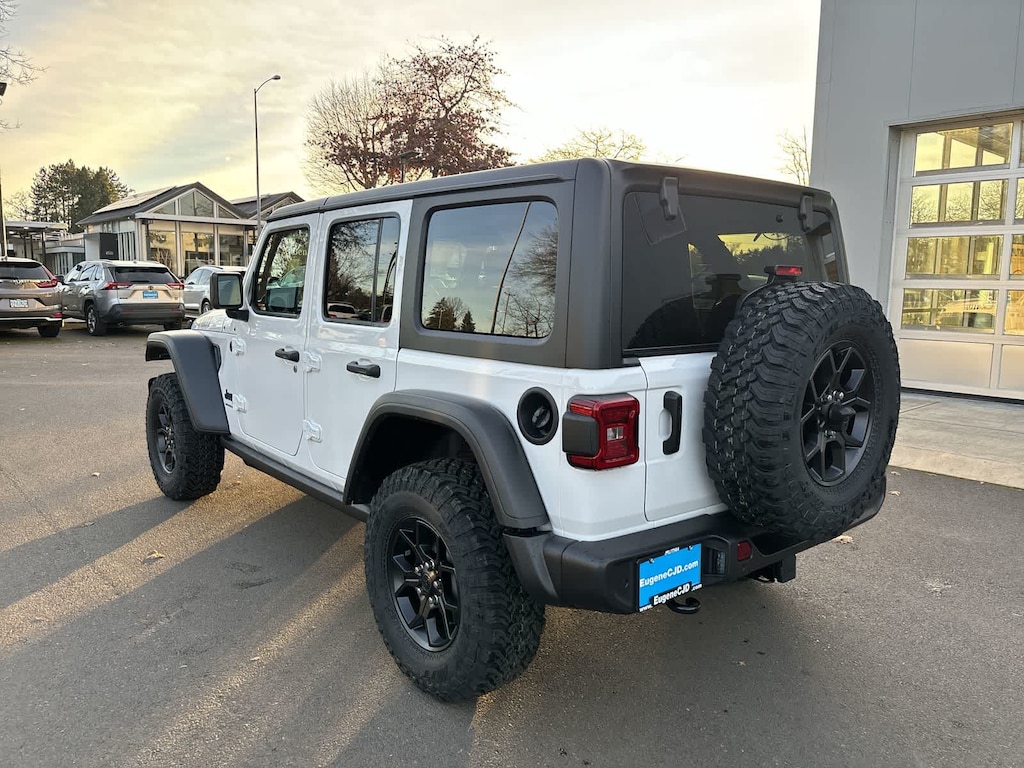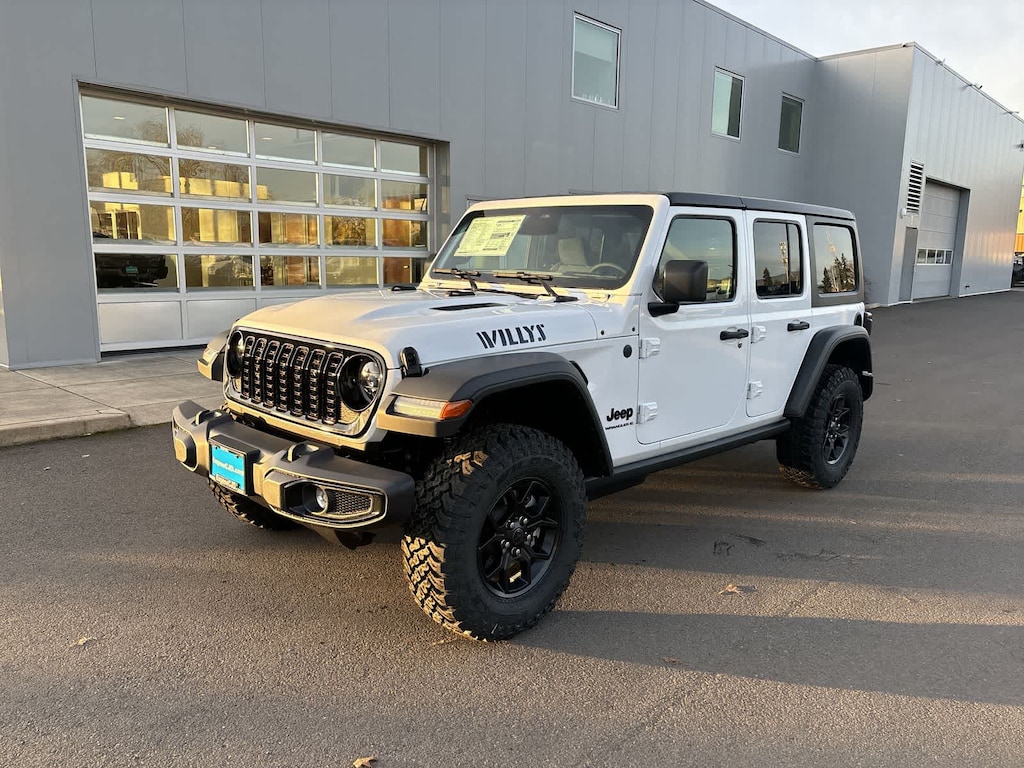 QUICK ORDER PACKAGE 24W WILLYS 3.6L V6 24V VVT UPG I Engine w/ESS, 8-Speed Automatic 850RE Transmission, 7 & 4 Pin Wiring Harness, Conventional Differential Front Axle, 4-Wheel Drive Swing Gate Decal, Black Grille w/Gloss Black Rings, Injection Molded Black Rear Bumper, Dana M210 Wide HD Tube Front Axle, Daytime Running Lamps LED Accents, Front LED Fog Lamps, LED Premium Reflector Headlamps, E-Locker Rear Axle, Corning Gorilla Glass, Security Alarm, Class II Receiver Hitch, Mold In Color Bumper w/Gloss Black, Advanced Brake Assist, Automatic Headlamps, Off-Road Plus Mode, Willys Hood Decal, Full Speed Forward Collision Warning Plus, Rock Protection Sill Rails, Power Heated Mirrors, Enhanced Adaptive Cruise Control, Auxiliary Switches, Dana M220 Wide Rear Axle, Molded in Color Rubicon, 8-SPEED AUTOMATIC 850RE TRANSMISSION Adaptive Cruise Control w/Stop, Anti-Lock 4-Wheel Disc Brakes, Integrated Radar Camera Module (IRCM), Dana M200 Rear Axle, Selec-Speed Control, BLACK 3-PIECE HARD TOP Freedom Panel Storage Bag, Rear Window Defroster, Rear Window Wiper/Washer, SAFETY GROUP ParkSense Rear Park Assist System, Auto High Beam Headlamp Control, Blind Spot & Cross Path Detection, LED Taillamps, Injection Molded Black Rear Bumper, CONVENIENCE GROUP Emergency/Assistance Call, 2-Door Passive Entry, Front Door Locks, Cluster 7.0 TFT Color Display, Universal Garage Door Opener, Heated Front Seats, Air Conditioning w/Auto Temp Control, Heated Steering Wheel, Air Filtering, 3.6L V6 24V VVT UPG I ENGINE W/ESS Engine Oil Cooler (STD). Jeep Willys with Bright White Clearcoat exterior and Black interior features a V6 Cylinder Engine with 285 HP at 6400 RPM*.