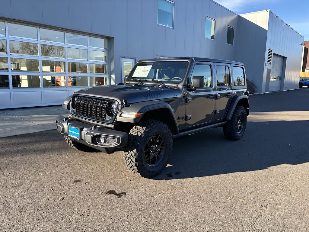 QUICK ORDER PACKAGE 24W WILLYS 3.6L V6 24V VVT UPG I Engine w/ESS, 8-Speed Automatic 850RE Transmission, 7 & 4 Pin Wiring Harness, Conventional Differential Front Axle, 4-Wheel Drive Swing Gate Decal, Black Grille, Injection Molded Black Rear Bumper, Dana M210 Wide HD Tube Front Axle, Daytime Running Lamps LED Accents, Front LED Fog Lamps, LED Premium Reflector Headlamps, E-Locker Rear Axle, Corning Gorilla Glass, Security Alarm, Class II Receiver Hitch, Mold In Color Bumper w/Gloss Black, Advanced Brake Assist, Automatic Headlamps, Off-Road Plus Mode, Willys Hood Decal, Full Speed Forward Collision Warning Plus, Rock Protection Sill Rails, Power Heated Mirrors, Enhanced Adaptive Cruise Control, Auxiliary Switches, Dana M220 Wide Rear Axle, Molded in Color Rubicon Highline Flare, Premium, 8-SPEED AUTOMATIC 850RE TRANSMISSION Adaptive Cruise Control w/Stop, Anti-Lock 4-Wheel Disc Brakes, Integrated Radar Camera Module (IRCM), Dana M200 Rear Axle, Selec-Speed Control, BLACK 3-PIECE HARD TOP Freedom Panel Storage Bag, Rear Window Defroster, Rear Window Wiper/Washer, SAFETY GROUP ParkSense Rear Park Assist System, Auto High Beam Headlamp Control, Blind Spot & Cross Path Detection, LED Taillamps, Injection Molded Black Rear Bumper, CONVENIENCE GROUP Emergency/Assistance Call, 2-Door Passive Entry, Front Door Locks, Cluster 7.0 TFT Color Display, Universal Garage Door Opener, Heated Front Seats, Air Conditioning w/Auto Temp Control, Heated Steering Wheel, Air Filtering, 3.6L V6 24V VVT UPG I ENGINE W/ESS Engine Oil Cooler (STD). Jeep Willys with Granite Crystal Metallic Clearcoat exterior and Black interior features a V6 Cylinder Engine with 285 HP at 6400 RPM*.