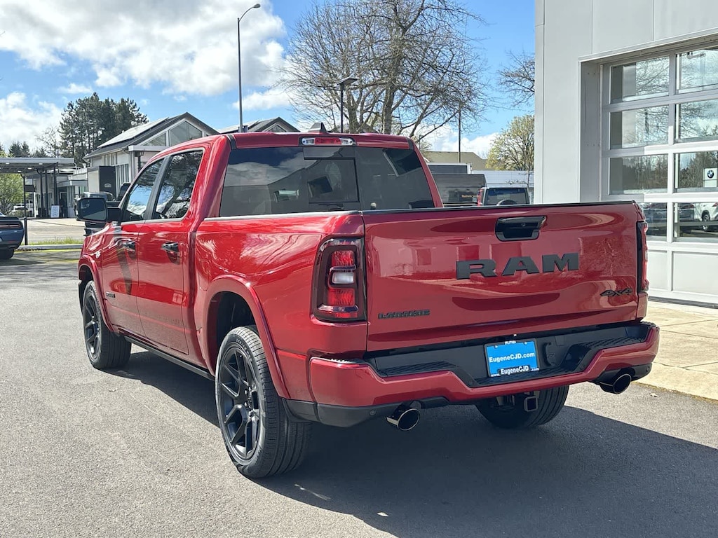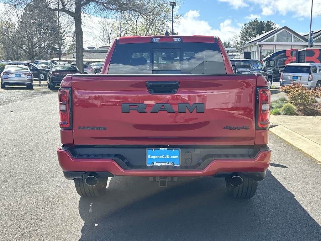 NIGHT EDITION Black Headlamp Bezels, Wheels: 22 x 9 Forged Aluminum, Tires: 285/45R22XL BSW All Season, Pirelli Brand Tires, Proximity Approach/Departure Lamps, Anti-Spin Differential Rear Axle, Accent Color Door Handles, Black Interior Accents, Body Color Front Bumper, Grille Surround 3 Black Texture 2 Black, Body Color Rear Bumper w/Step Pads, RAM Grille Badge - Black, Black Painted Exterior Mirrors Caps, Exterior Mirrors Approach Lamps, Accent Color Premium Power Mirrors, Sport Performance Hood, Black Exterior Truck Badging, Accent Color Tailgate Handle, Dual Exhaust w/Black Tips, Black Tail Lamp Bezels, LARAMIE LEVEL 2 EQUIPMENT GROUP Rain Sensitive Windshield Wipers, 14.4 Touchscreen Display, Front Passenger Interactive Display, Radio: Uconnect 5 Nav w/14.4 Display, harman/kardon® 19 Speaker Premium Sound, Cluster 12 TFT Color Display, Power Tailgate, DUAL-PANE PANORAMIC SUNROOF LED Dome/Reading Lamp, Dome Dual LED Reading Lamp, POWER DEPLOYABLE RUNNING BOARDS, ENGINE: 5.7L V8 HEMI MDS VVT ETORQUE 48V Belt Starter Generator, Heavy Duty Engine Cooling, Passive Tuned Mass Damper, Delete Alternator, Passive Cold End Exhaust, 18 Aluminum Spare Wheel, PROTECTION GROUP Transfer Case Skid Plate, Steering Gear Skid Plate, Fuel Tank Skid Plate, Tow Hooks, MOPAR FRONT & REAR RUBBER FLOOR MATS, TRANSMISSION: 8-SPEED AUTOMATIC (8HP75) (STD). Ram Laramie with Molten Red Pearlcoat exterior and Black interior features a 8 Cylinder Engine with 395 HP at 5600 RPM*.