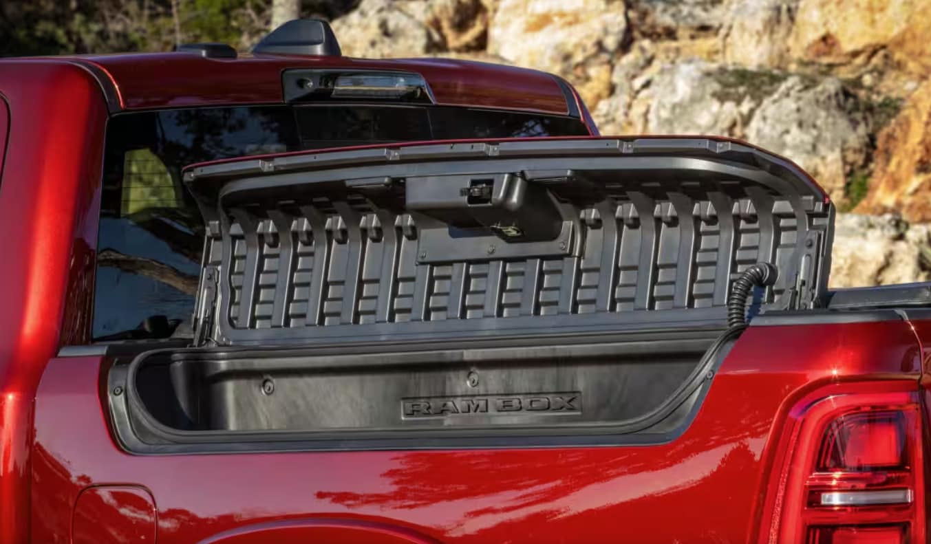 - Thoughtful storage solutions, including an available large center console and in-floor RamBox Cargo Management System, provide ample space to securely stow your gear