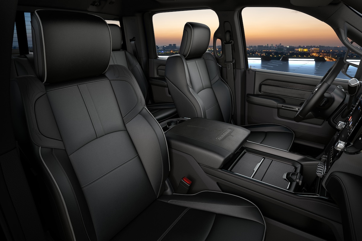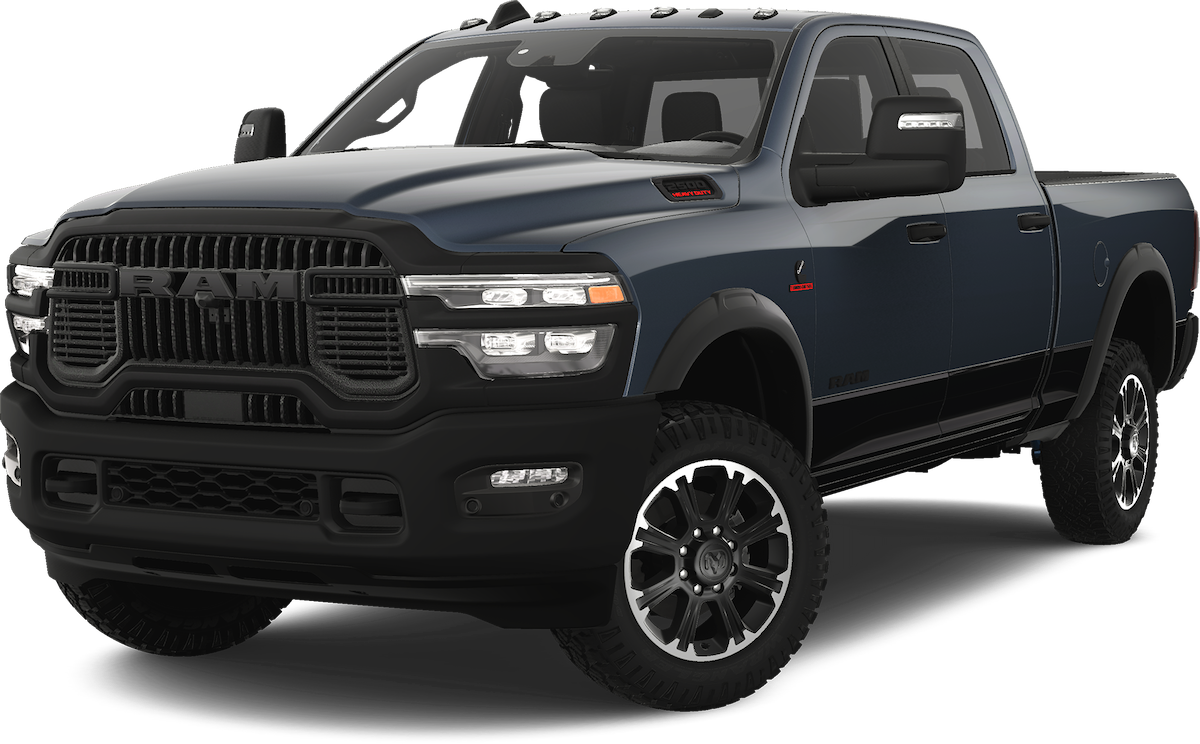The Night Edition for the Ram 2500 is a cosmetic package available for the Laramie, Limited, and Big Horn trim levels. This package has a monochromatic body color and all-black accents for the exterior badging, wheels, grille, bezels, and mirrors as well as a blacked-out interior. Ram 2500 Night Edition trucks also offer a Sport Performance Hood for a more assertive look thanks to the hood vent.