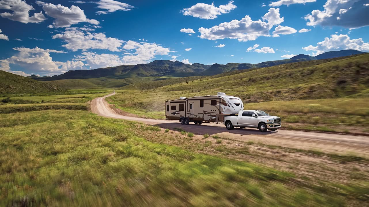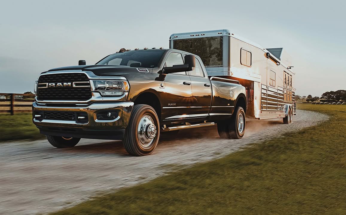 Ram 3500 trucks have up to 37,090 pounds of towing capacity when properly equipped, allowing them to tow various trailers ranging from conventional boat trailers and fifth-wheel camper trailers to gooseneck trailers with heavy machinery or cars.