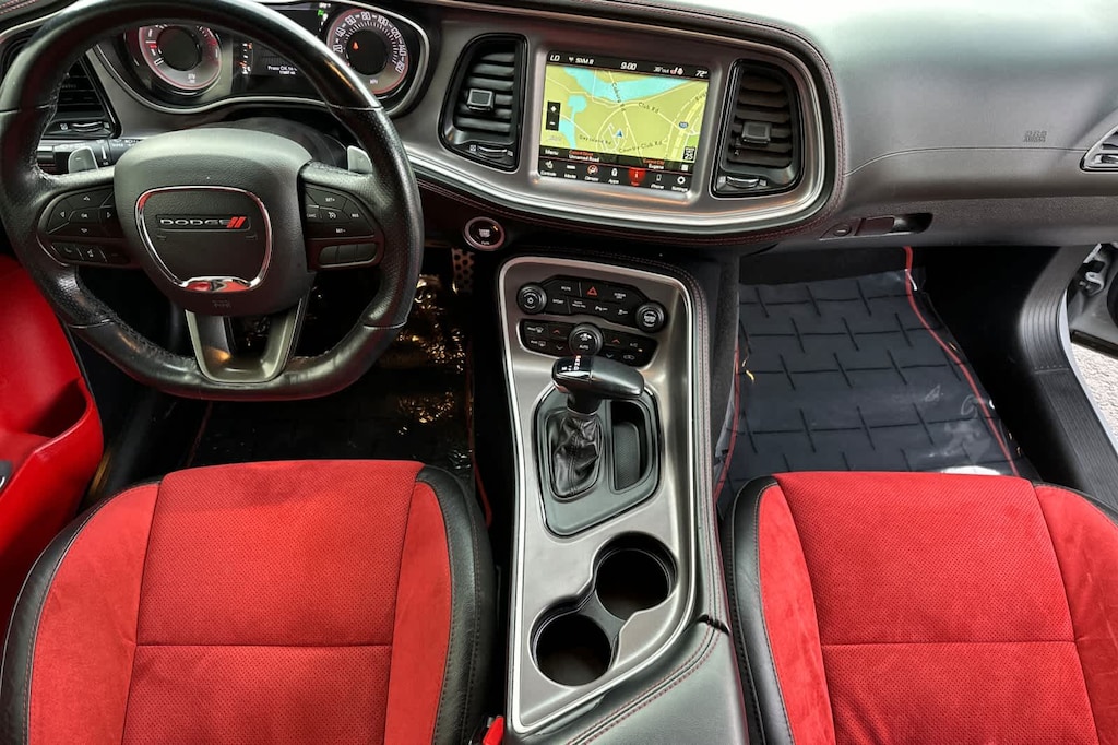 PLUS PACKAGE Power Tilt/Telescope Steering Column, Dodge Performance Pages, SiriusXM Satellite Radio, SiriusXM Radio Service, For More Info, Call 800-643-2112, 276 Watt Amplifier, HD Radio, For Details, Visit DriveUconnect.com, Heated Front Seats, Line Lock, Radio: Uconnect 4C w/8.4 Display, 1-Yr SiriusXM Guardian Trial, Premium-Stitched Dash Panel, Shark Fin Antenna, 4G LTE Wi-Fi Hot Spot, Door Trim Panel w/Ambient Lighting, Wheels: 20 x 8 Machined w/Granite Pocket, 6 Premium Alpine Speakers, Heated Steering Wheel, 8.4 Touchscreen Display, Radio/Driver Seat/Mirrors Memory, SHAKER PACKAGE Dash Plaque, MOPAR Shaker Hood, Black Fuel Filler Door, Gloss Black I/P Cluster Trim Rings, Challenger Script Grille Badge, Rear Black Spoiler, MOPAR Shaker Intake, Underhood Shaker Decal, White Face Instrument Cluster, Black Grille w/Bezel, PERFORMANCE HANDLING GROUP Flat-Bottom Steering Wheel, Brembo 4-Piston Fixed Caliper Brakes, High Performance Suspension, Line Lock, Black Brake Calipers, TRANSMISSION: 8-SPEED AUTOMATIC (8HP70) AutoStick Automatic Transmission, Remote Start System, 3.07 Rear Axle Ratio, Tip Start, Steering Wheel Mounted Shift Control, Conventional Differential Rear Axle, Auto Leather Wrapped Shift Knob, DRIVER CONVENIENCE GROUP Blind Spot & Cross Path Detection, High Intensity Discharge Headlamps, Rhombi Illum Air Catcher Headlamp, Power Multi-Function Foldaway Mirrors, RADIO: UCONNECT 4C NAV W/8.4 DISPLAY SiriusXM Traffic Plus, GPS Navigation, SiriusXM Travel Link, ENGINE: 5.7L V8 HEMI MDS VVT. Dodge R/T with Smoke Show exterior and Ruby Red/Black interior features a 8 Cylinder Engine with 372 HP at 5200 RPM*.