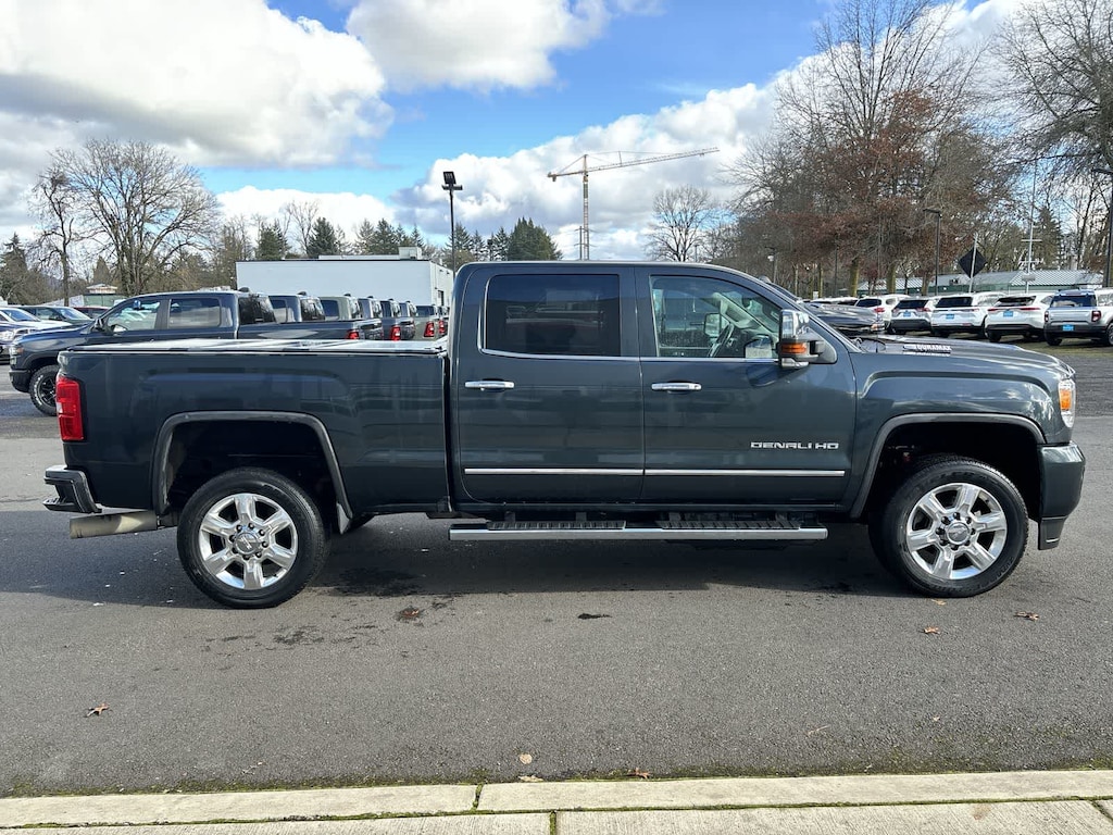 DURAMAX PLUS PACKAGE includes (L5P) Duramax 6.6L Turbo-Diesel V8 engine and (VQY) chrome recovery hooks, LPO, (MW7) Allison 1000 6-speed automatic transmission (Includes (DQS) outside memory equipped heated power-adjustable vertical trailering mirrors.), MIRRORS, OUTSIDE HEATED POWER-ADJUSTABLE VERTICAL TRAILERING, MEMORY EQUIPPED, UPPER GLASS, POWER-FOLDING AND MANUAL EXTENDING, CHROME Includes integrated turn signal indicators, consisting of 51 square inch flat mirror surface positioned over a 24.5 square inch convex mirror surface with a common head and lower convex spotter glass (convex glass is not heated and not power-adjustable) and addition of auxiliary cargo lamp for backing up (helps to see trailer when backing up with a trailer) and amber auxiliary clearance lamp, AUDIO SYSTEM, 8 DIAGONAL COLOR TOUCH SCREEN NAVIGATION WITH GMC INFOTAINMENT SYSTEM, AM/FM/SIRIUSXM, HD RADIO with USB ports, auxiliary jack, Bluetooth® streaming audio for music and most phones, Pandora Internet radio and voice-activated technology for radio and phone (STD), ENGINE, DURAMAX 6.6L TURBO-DIESEL V8, B20-DIESEL COMPATIBLE (445 hp [332 kW] @ 2800 rpm, 910 lb-ft of torque [1220 Nm] @ 1600 rpm) Includes capped fuel fill, (K40) exhaust brake, and (K05) engine block heater. TRANSMISSION, ALLISON 1000 6-SPEED AUTOMATIC, ELECTRONICALLY CONTROLLED with overdrive, electronic engine grade braking and tow/haul mode. GMC Denali with Dark Slate Metallic exterior and Jet Black interior features a 8 Cylinder Engine with 445 HP at 2800 RPM*.