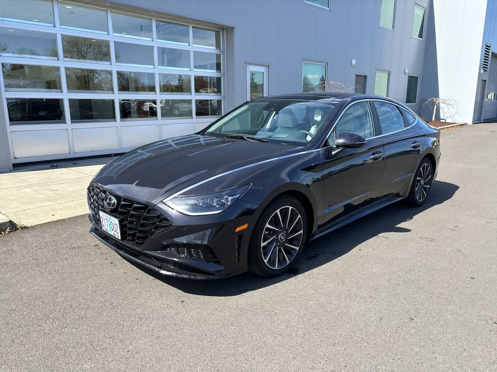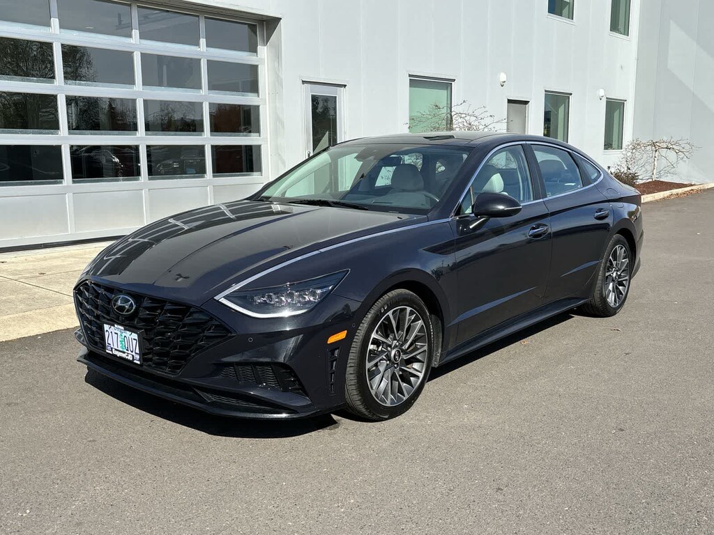 OPTION GROUP 01 standard equipment. Hyundai Limited with Carbon Blue exterior and Dark Gray interior features a 4 Cylinder Engine with 180 HP at 5500 RPM*.