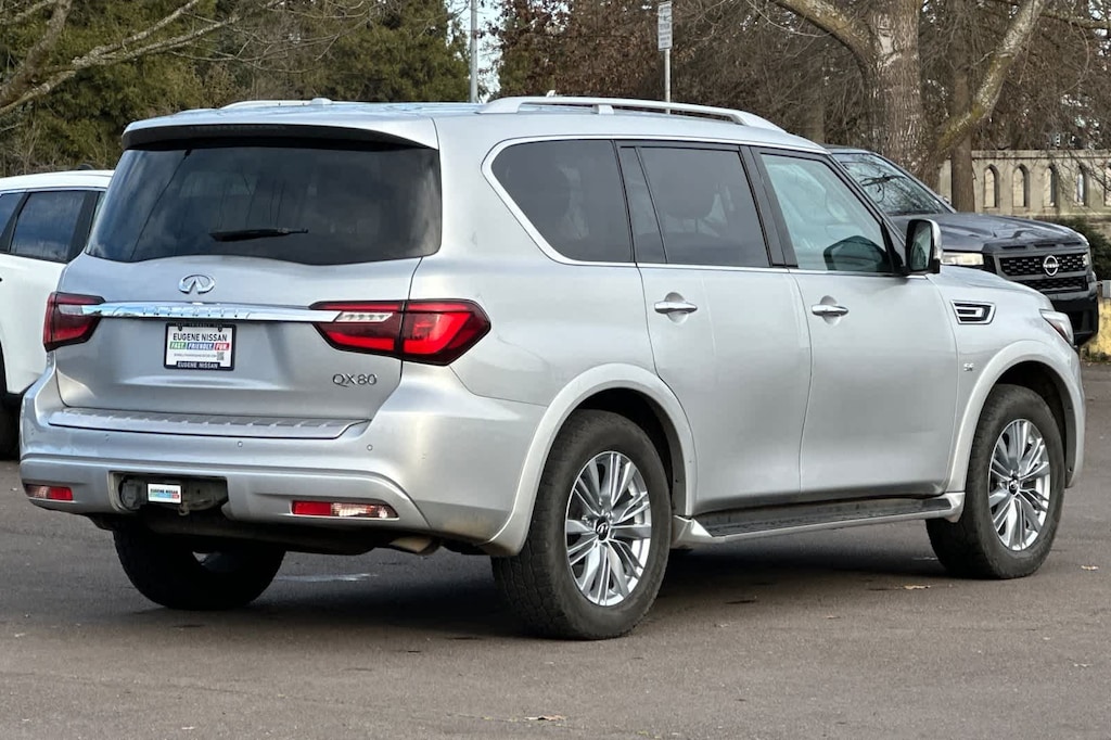 Leather Seats, Third Row Seat, Navigation. Rear Spoiler, MP3 Player, Sunroof, Rear Seat Audio Controls, 4x4, Onboard Communications System, Aluminum Wheels. INFINITI LUXE with Liquid Platinum exterior and Graphite interior features a 8 Cylinder Engine with 400 HP at 5800 RPM*.