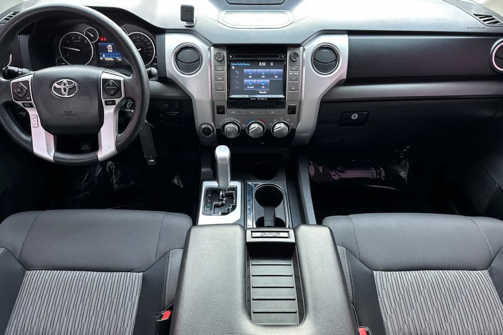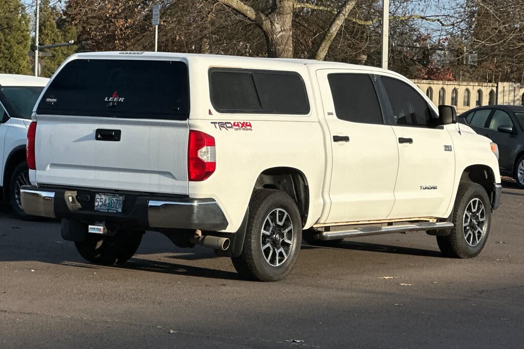 TRD OFF ROAD PACKAGE Tires: P275/65R18 Michelin LTX All Terrain, BF Goodrich, Wheels: 18 x 8J Split 5-Spoke TRD Off-Road Alloy, black accents, Trail-Tuned Bilstein Shock Absorbers, Engine & Fuel Tank Skid Plates, TRD Off-Road Graphics, SR5 UPGRADE PACKAGE front center console w/3 cupholders and replaces standard equipment column shifter w/floor mounted urethane shift lever and knob, Compass, Anti-Theft Immobilizer w/Alarm, Urethane Tilt/Telescopic Steering Wheel, Auto-Dimming Rearview Mirror, 38 Gallon Fuel Tank Capacity, Front Bucket Seats, 8-way power adjustable drivers seat w/power lumbar support and 4-way manual adjustable front passenger seat, HomeLink Universal Transceiver. Toyota SR5 with Super White exterior and Graphite interior features a 8 Cylinder Engine with 381 HP at 5600 RPM*. Non-Smoker vehicle