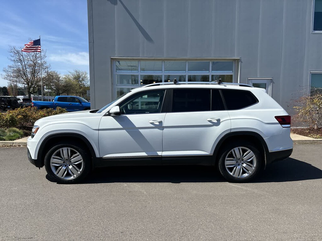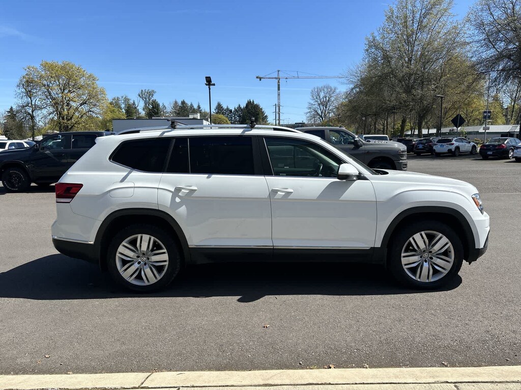 Third Row Seat, Navigation, Panoramic Roof, Power Liftgate, Rear Air, Heated Driver Seat, Back-Up Camera, Satellite Radio, iPod/MP3 Input, CD Player, Trailer Hitch, Remote Engine Start, Dual Zone a/C, Blind Spot Monitor, Hands-Free Liftgate Rear Spoiler, MP3 Player, Sunroof, All Wheel Drive, Onboard Communications System. Volkswagen 3.6L V6 SEL with Pure White exterior and Titan Black interior features a V6 Cylinder Engine with 276 HP at 6200 Rpm*.